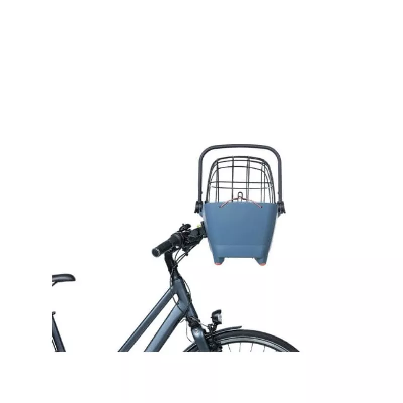 Panier bleu arrière pour chien Buddy de la marque Basil au design moderne. Livré avec le système MIK pour attacher ce panier à tous les porte-bagages.