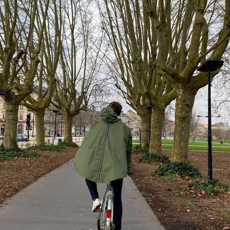 Le poncho de pluie Le temps des grenouilles est parfaitement adaptée pour vos trajets urbains quotidiens à vélos . Fait en matière recyclé. Unisexe.