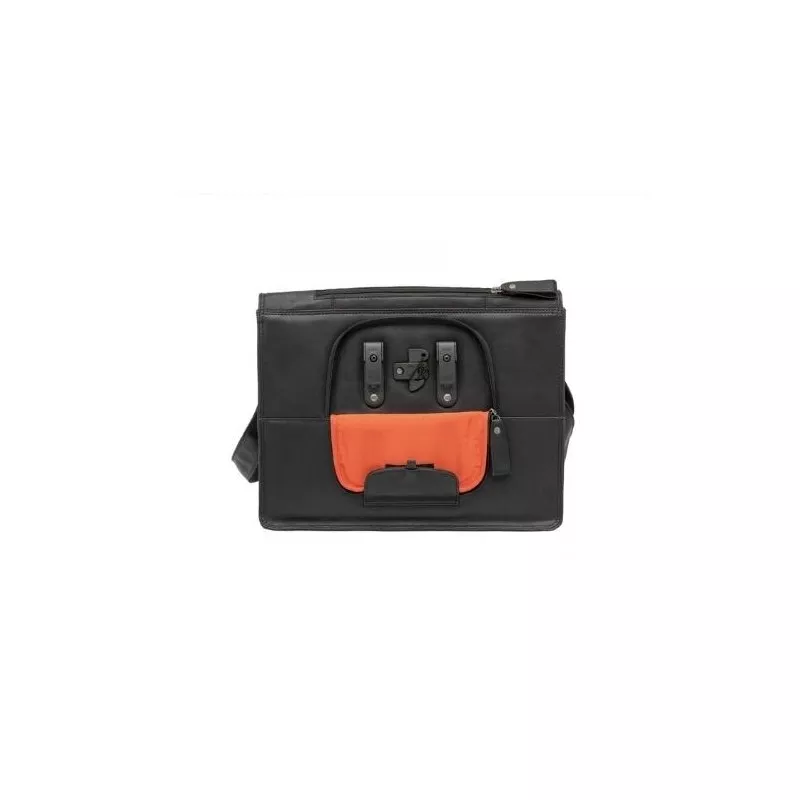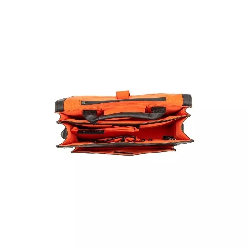 Sacoche de vélo en cuir New Looxs. Idéale pour transporter un ordinateur portable avec son comportiment rembouré. Satisfait ou remboursé sous 30 jours.